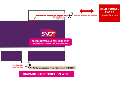 During this period, the shuttle will depart from and arrive at the Belcier Bus Station, located at the back of the train station, accessible via Hall 3 – opposite 142 rue des Terres de Borde. Please plan your connections well in advance.
